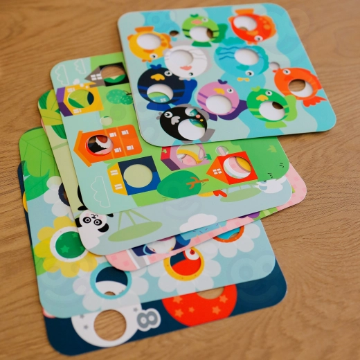 Le tavole colorate con numeri, colori, forme e animaletti ampliano gli scenari di gioco. Supportano la prima alfabetizzazione matematica e il riconoscimento di colori e forme.