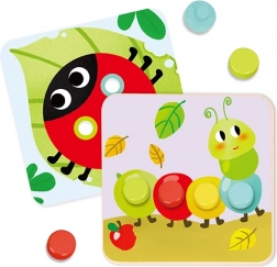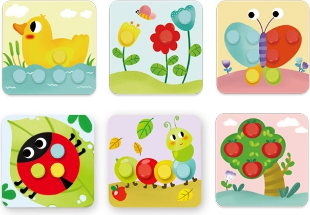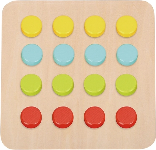 Questo puzzle contiene 16 blocchi colorati e 6 schede con animali. I blocchi vengono posizionati in base alla forma per completare l'immagine. Sviluppa la coordinazione visiva nei bambini.