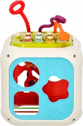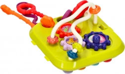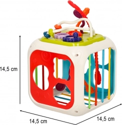 Il cubo offre molte attività che promuovono lo sviluppo sensoriale e la coordinazione occhio-mano.