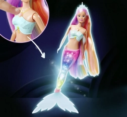 La bambola Steffi Sirena porta nel mondo dei bambini infinite possibilità di gioco e divertimento. La sua pinna magica illuminata si illumina con splendidi colori arcobaleno e aggiunge magia a ogni avventura subacquea. Grazie alla sua resistenza all'acqua non dovrai preoccuparti di eventuali danni, e il tuo bambino potrà godere del gioco sia in acqua che fuori.