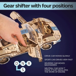 L'Endurance Racer di Ugears è un coupé sportivo a due porte progettato per gli appassionati di automobili. Il modello vanta caratteristiche da gara realistiche, come la leva del cambio con modalità avanti, indietro e sport per un'accelerazione extra. Gli pneumatici in silicone garantiscono maggiore aderenza e stabilità.