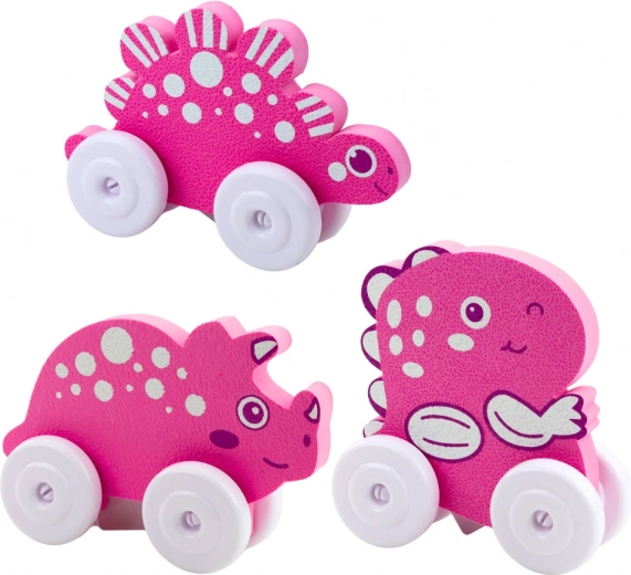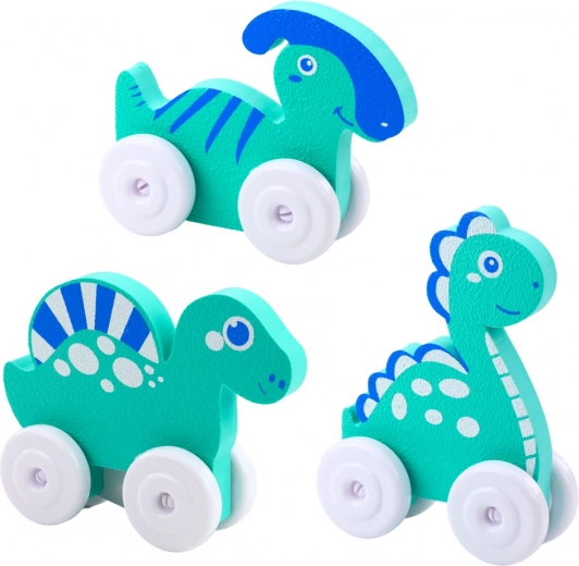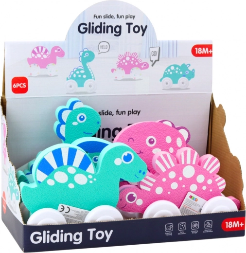I dinosauri colorati su ruote sono progettati per il divertimento dei bambini. Hanno un aspetto amichevole, forme arrotondate e colori pastello che stimolano l'immaginazione. Grazie alle ruote, i giocattoli si muovono facilmente e la struttura leggera permette ai bambini di spingerli facilmente e portarli ovunque.