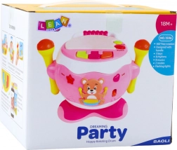 Questo tamburo musicale offre 8 diverse modalità di gioco: suonare il tamburo, ascoltare musica, canzoni educative, storie e quiz. Dispone di pulsanti colorati con immagini di animali, un pannello tattile luminoso, un microfono interattivo e due simpatiche bacchette per il tamburo. Tutto è racchiuso in una struttura stabile e colorata con il tema di un adorabile orsetto.