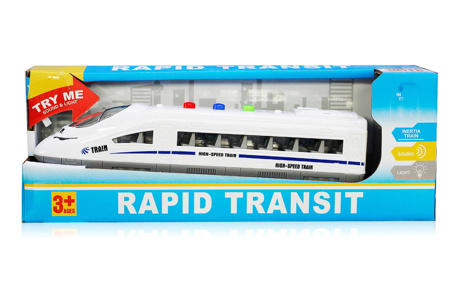 Trenino a inerzia rapido di 21,5 cm con fantastici effetti di luce e suono per tutti i piccoli amanti dei treni. Perfetto per divertimento e sviluppo dell'immaginazione.