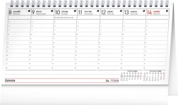 Pianifica efficacemente con il nostro calendario da tavolo per l'anno 2026, che offre spazio sufficiente per le note e una struttura chiara con nomi e festività ceche.