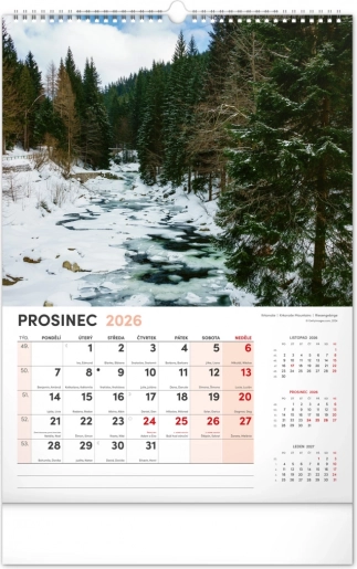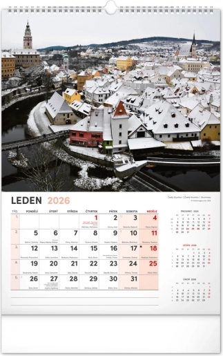 Scopri le bellezze della Repubblica Ceca con il nostro calendario da parete per l'anno 2026. Le fotografie catturano i luoghi più belli, come Praga, Kutná Hora o Olomouc, nel formato del calendario verticale.