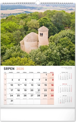 Calendario da parete Mio paese 2026 con fotografie da tutta la Repubblica Ceca. Scopri Praga, Kutná Hora e Olomouc in un formato attraente.