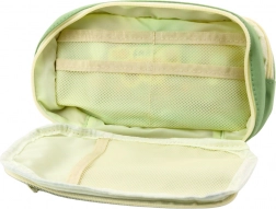 All'interno dell'astuccio si trovano tasche a rete, ideali per oggetti più piccoli come gomme, temperamatite o graffette. L'astuccio è realizzato in materiale resistente con un design moderno di colore verde e dettagli chiari, facile da mantenere. È adatto non solo per la scuola, ma anche per ufficio o attività ricreative.