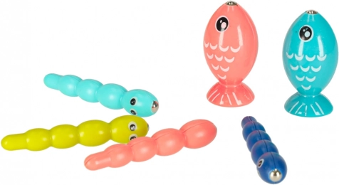 Il set include molti elementi, come due pesciolini, quattro vermetti, un martello e una canna da pesca. Ognuno di questi elementi è importante per il gioco attivo, che fornirà al bambino tanta gioia!