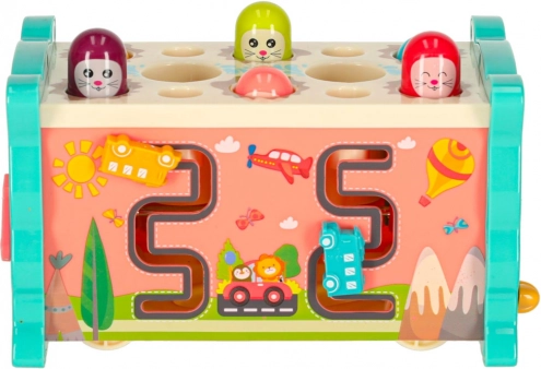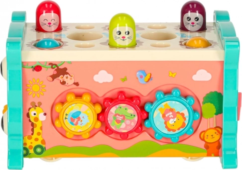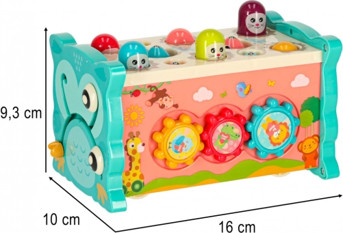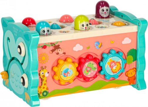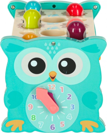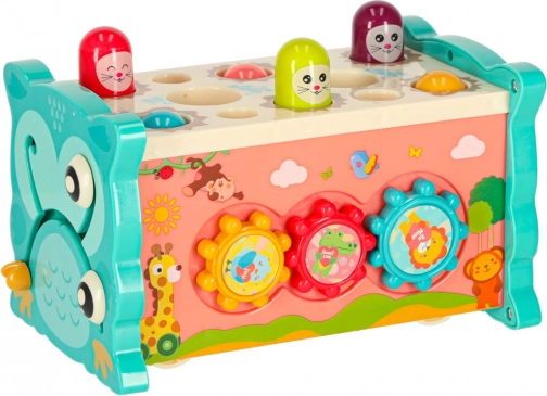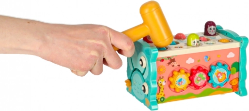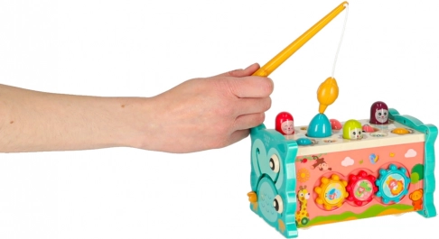 Questo giocattolo interattivo garantisce ore di divertimento! Uno degli elementi principali è la possibilità di battere piccoli talpe con un martello, che saltano fuori, il che dà ai bambini gioia e migliora i loro riflessi. Il giocattolo permette anche di catturare pesci colorati e vermetti usando la canna da pesca inclusa, il che aiuta a sviluppare la precisione e la pazienza. I bambini possono anche imparare le basi dell'orologio, ruotare ingranaggi colorati e muovere macchinine in un labirinto. Grazie alle diverse attività, il set garantisce ore di divertimento, stimolando i sensi dell'infanzia con colori intensi e forme variegate.