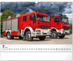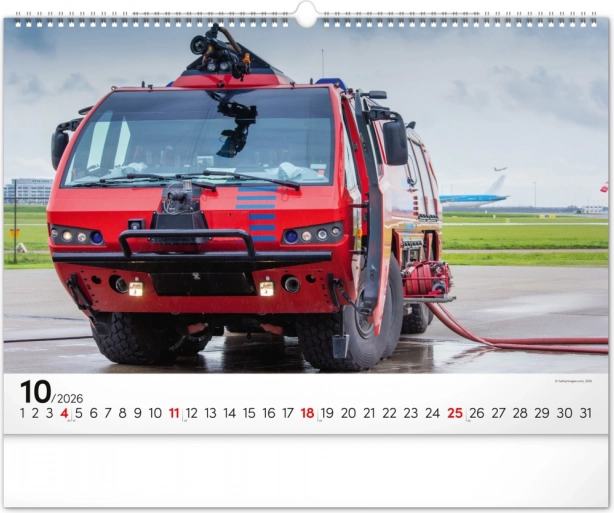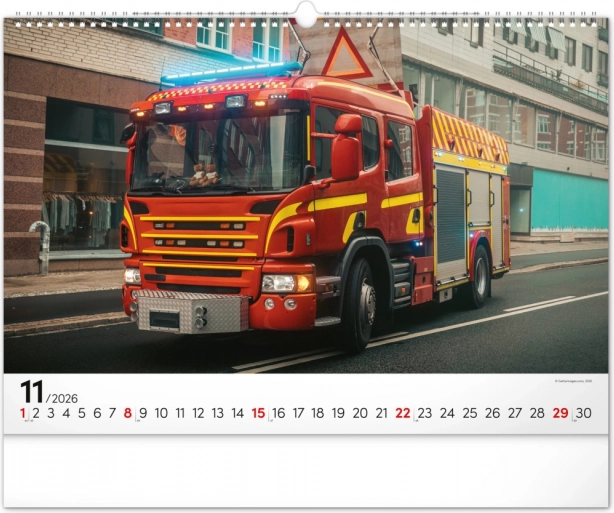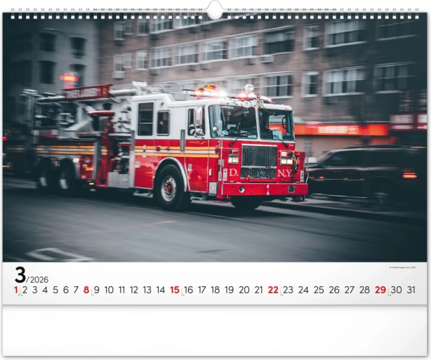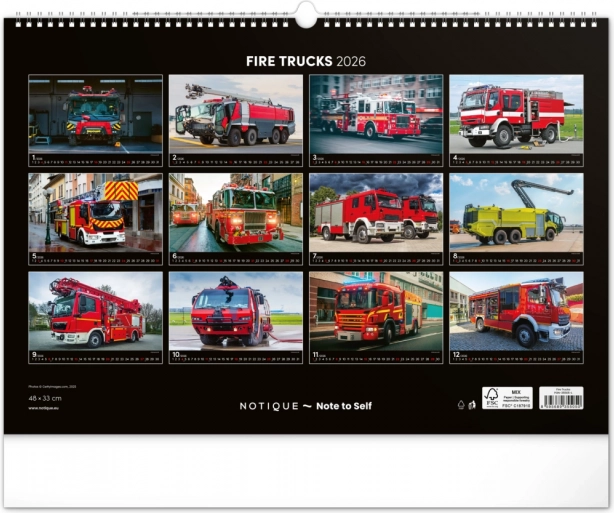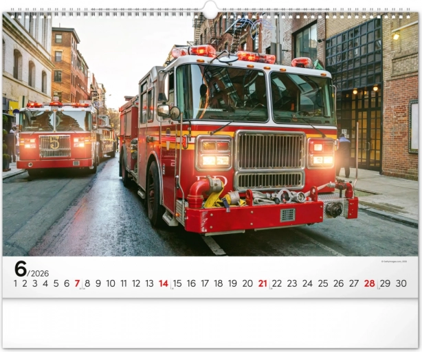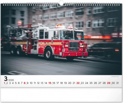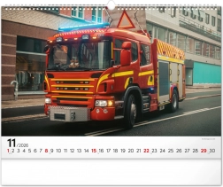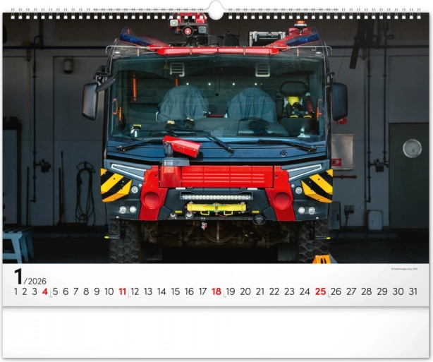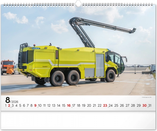 Ogni mese del calendario mostra fotografie uniche dei veicoli dei pompieri, che colpiscono per la loro dinamicità e atmosfera infuocata. Il calendario ha un calendario universale, che è chiaramente posizionato su uno sfondo elegante nero.