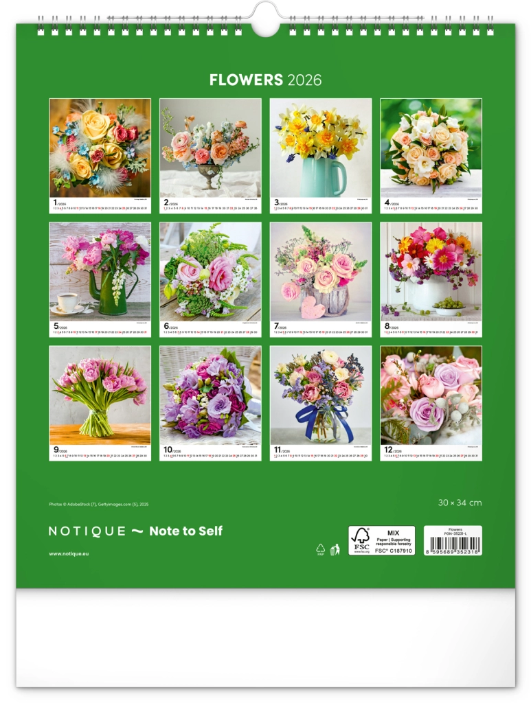 Goditi tutto l'anno la vista di fiori colorati e bellissimi con il nostro calendario da parete. Composizioni floreali originali e calendario universale su sfondo bianco aggiungono eleganza a qualsiasi spazio.