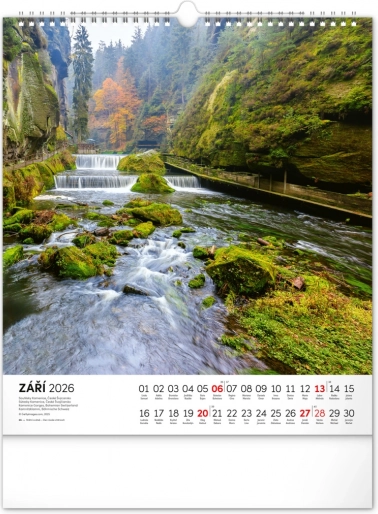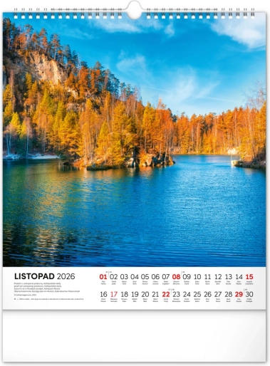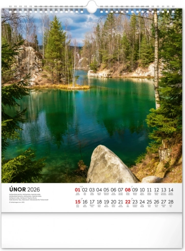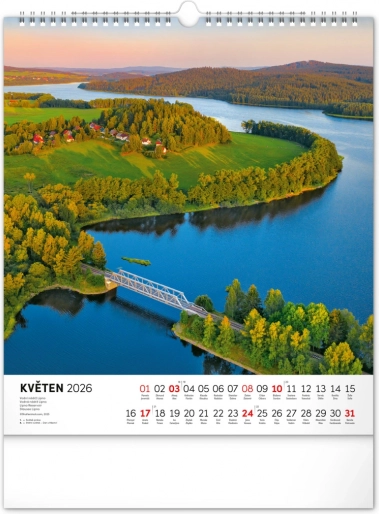 Scopri le bellezze delle acque di tutta la Repubblica Ceca con il calendario da parete Regno delle Acque 2026. Offre dodici splendide fotografie accompagnate da un semplice calendario con i nomi cechi.