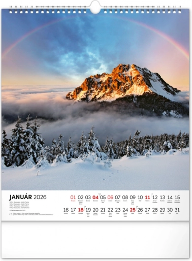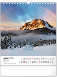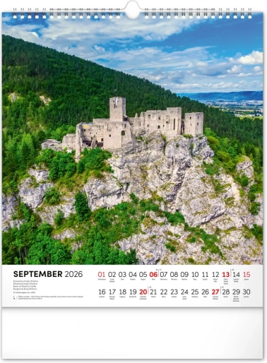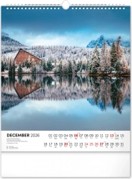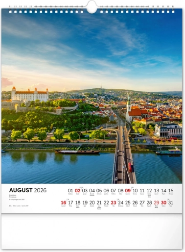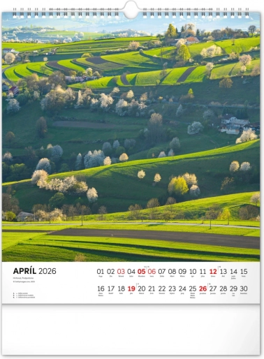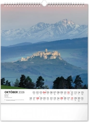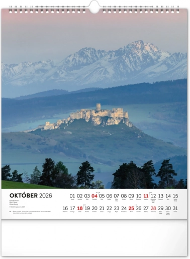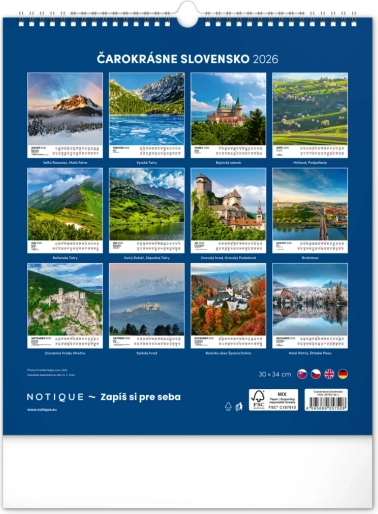 Scopri il patrimonio naturale e culturale della Slovacchia nel nostro calendario da parete per l'anno 2026. Il formato 30 x 34 cm offre splendide fotografie della Slovacchia e un calendario slovacco chiaro con festività e domeniche evidenziate.