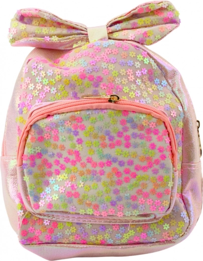 Lo zaino per bambini in color rosa pastello, decorato con un fiocco e paillettes, incanterà ogni bambina. È realizzato in materiale sintetico leggero con paillettes lucide, resistente e facile da indossare. La tasca principale con cerniera offre spazio sufficiente per i giocattoli preferiti, spuntini o libri. Una tasca anteriore più piccola è destinata alle piccole cose. Grazie al fiocco decorativo e ai dettagli luccicanti, lo zaino diventa un accessorio speciale tra quelli per bambini.