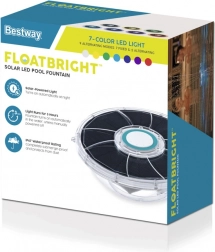 La fontana a LED solare Bestway è un moderno accessorio galleggiante per piscina che combina un effetto d’acqua con illuminazione colorata. Si accende automaticamente al calare della sera e offre un controllo semplice con un solo pulsante.