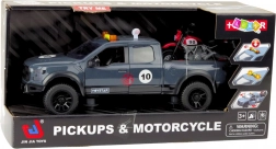 Il pick-up con motocicletta è progettato per i più giovani appassionati di automobilismo e offre funzioni che arricchiscono il gioco e stimolano l’immaginazione. Le porte apribili e il bagagliaio posteriore facilitano il carico della moto, permettendo di creare vari scenari di gioco: dalle missioni di salvataggio alle gare fuoristrada.