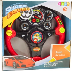 Grazie alla funzione di imitazione dei suoni del clacson, delle frecce o della guida e agli strumenti retroilluminati, il bambino ha la possibilità di un gioco interattivo e realistico. Il volante include 7 pulsanti funzionali, ognuno dei quali attiva effetti diversi – dai rumori del motore alle luci, fino a melodie e vibrazioni. Il pulsante ON/OFF a forma di accensione permette al bambino di iniziare a giocare come se fosse in una vera auto. L’illuminazione degli strumenti e le vibrazioni realistiche aumentano la sensazione di essere nell’abitacolo di un’auto. Il giocattolo supporta in modo eccellente lo sviluppo dei sensi, la coordinazione occhio-mano e l’immaginazione.