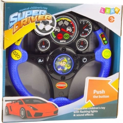 Il volante interattivo per bambini dispone di 7 pulsanti funzionali, ognuno dei quali attiva diversi effetti: dai suoni del motore, alle luci, fino a melodie e vibrazioni. Il pulsante ON/OFF a forma di chiave permette al bambino di iniziare a giocare come in una vera auto. L’illuminazione del cruscotto e le vibrazioni realistiche aumentano la sensazione di essere nell’abitacolo di un’auto.