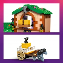 Scopri il fascino della campagna con gli amici di Heartlake City. Il set unisce il gioco con gli animali a un ambiente ricco di dettagli: scuderia con soppalco per dormire, accogliente salotto, illuminazione esterna a forma di cavallo e un grande cortile per prendersi cura dei pony. Il paranco per il fieno funzionante sposta facilmente le balle in soffitta o sul carro, così i bambini possono inventare compiti agricoli realistici.
