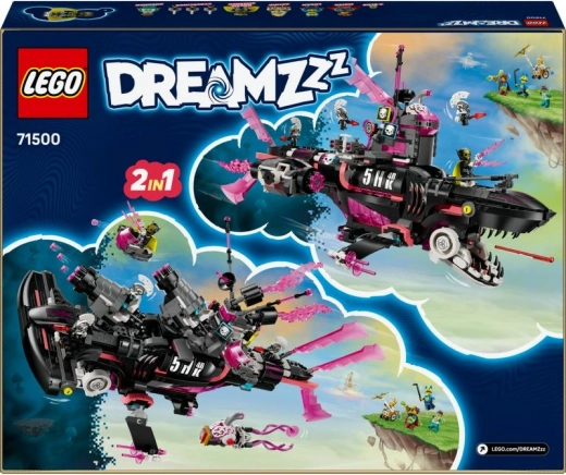 Esplora le profondità della fantasia con un set che unisce gioco, narrazione e funzioni intelligenti. I bambini prima costruiscono lo squalo e poi lo trasformano in un sottomarino squalesco oppure in una macchina da guerra in stile pesce martello. I lanciatori modulari possono essere combinati anche con altri set LEGO DREAMZzz, così le possibilità di azione e creatività crescono continuamente.