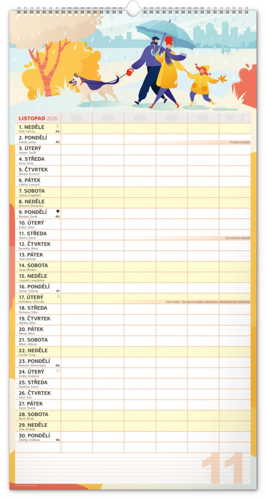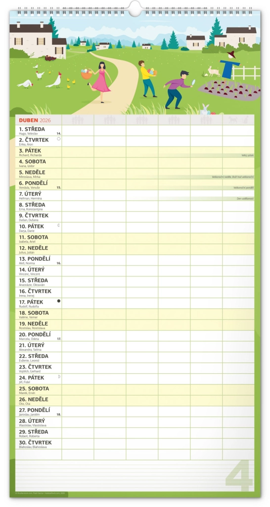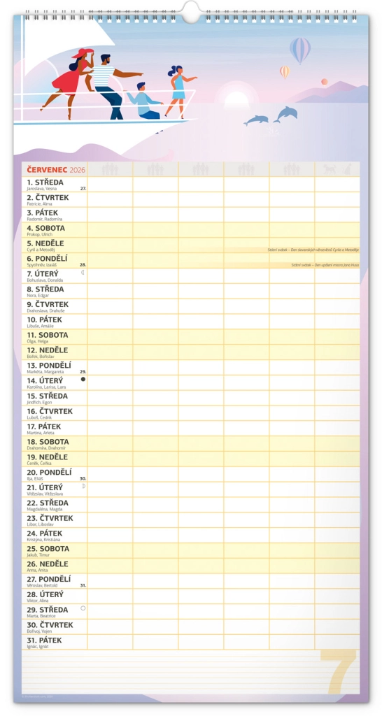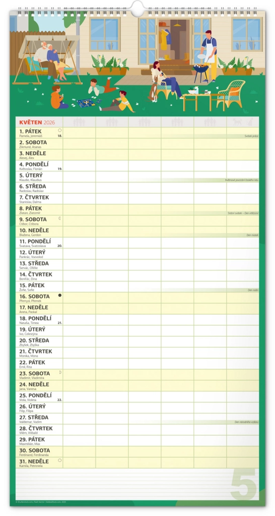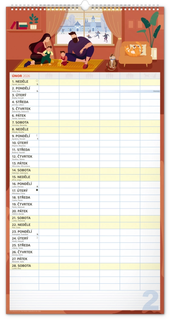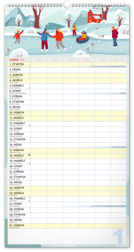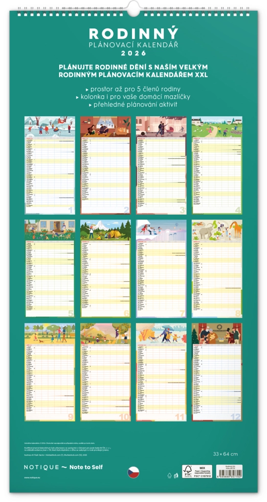 Questo calendario murale pianificatore XXL per l'anno 2026 è ideale per le famiglie numerose. Grazie al calendario ceco e al pianificatore di attività per sei membri della famiglia, rimarrete organizzati e non perderete nulla.
