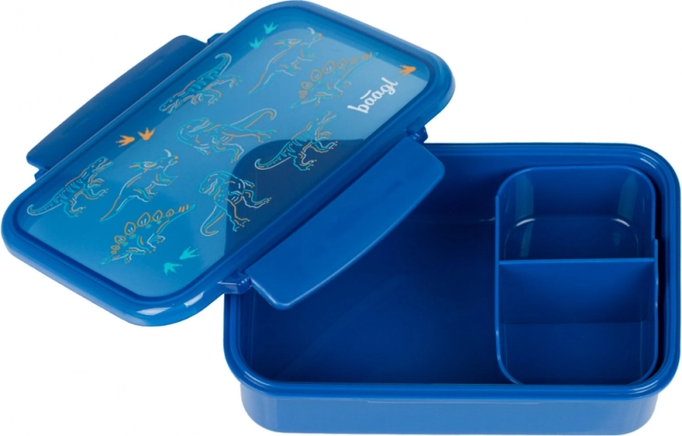 Pratica scatola per merenda con motivo Dino, ideale per separare vari cibi grazie a scomparti rimovibili e configurazione variabile. La scatola è senza BPA ed è adatta per l'uso in microonde e lavastoviglie.