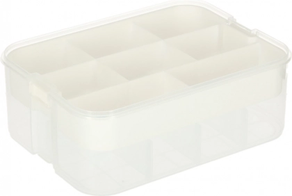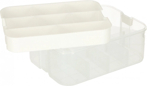Pratico organizzatore con coperchio e scomparti personalizzabili per organizzare facilmente giocattoli e piccoli oggetti.