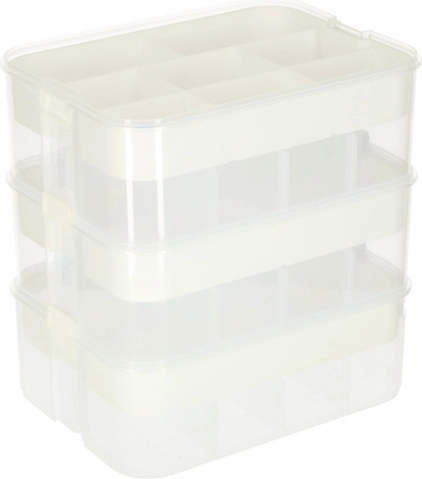 Organizzatore per giocattoli è la soluzione ideale per organizzare e conservare i tuoi oggetti. È composto da tre contenitori trasparenti, coperchi con rilievi e scomparti personalizzabili che ti permettono di organizzare facilmente lo spazio secondo le tue esigenze.