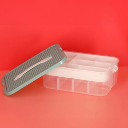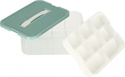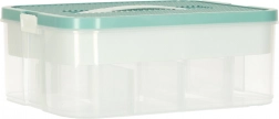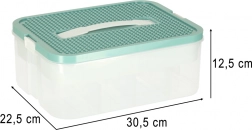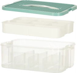 L'organizer è realizzato in plastica resistente, mentre il coperchio blu conferisce un aspetto attraente.