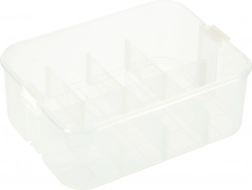 Questo organizer è la soluzione ideale per chi ha bisogno di tenere in ordine giocattoli, costruzioni o altri piccoli oggetti. Contiene un box di stoccaggio trasparente con robusti ganci per la sicurezza del contenuto.