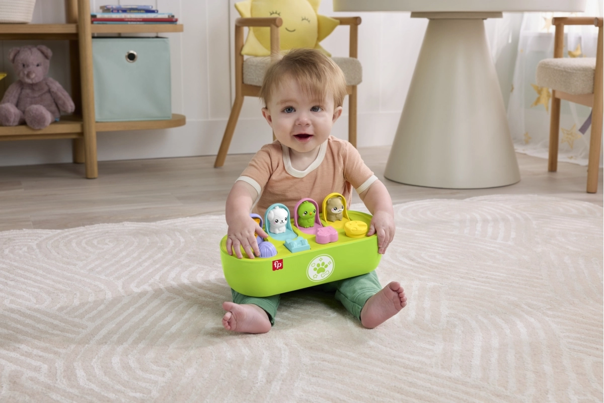 Scopri il divertente giocattolo interattivo di Fisher‑Price, che insegna ai bambini la causa ed effetto e sviluppa la motricità fine. Ruota, fai scorrere, premi o aziona l’interruttore: dalle finestrelle colorate saltano fuori simpatici animaletti. Ideale per bambini dai 9 mesi, con elementi facili da afferrare e una struttura resistente.