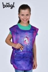 Stiloso grembiule per bambini con motivo cavallo ideale per educazione artistica, attività manuali e altri laboratori. Realizzato in materiale lavabile per una facile manutenzione.