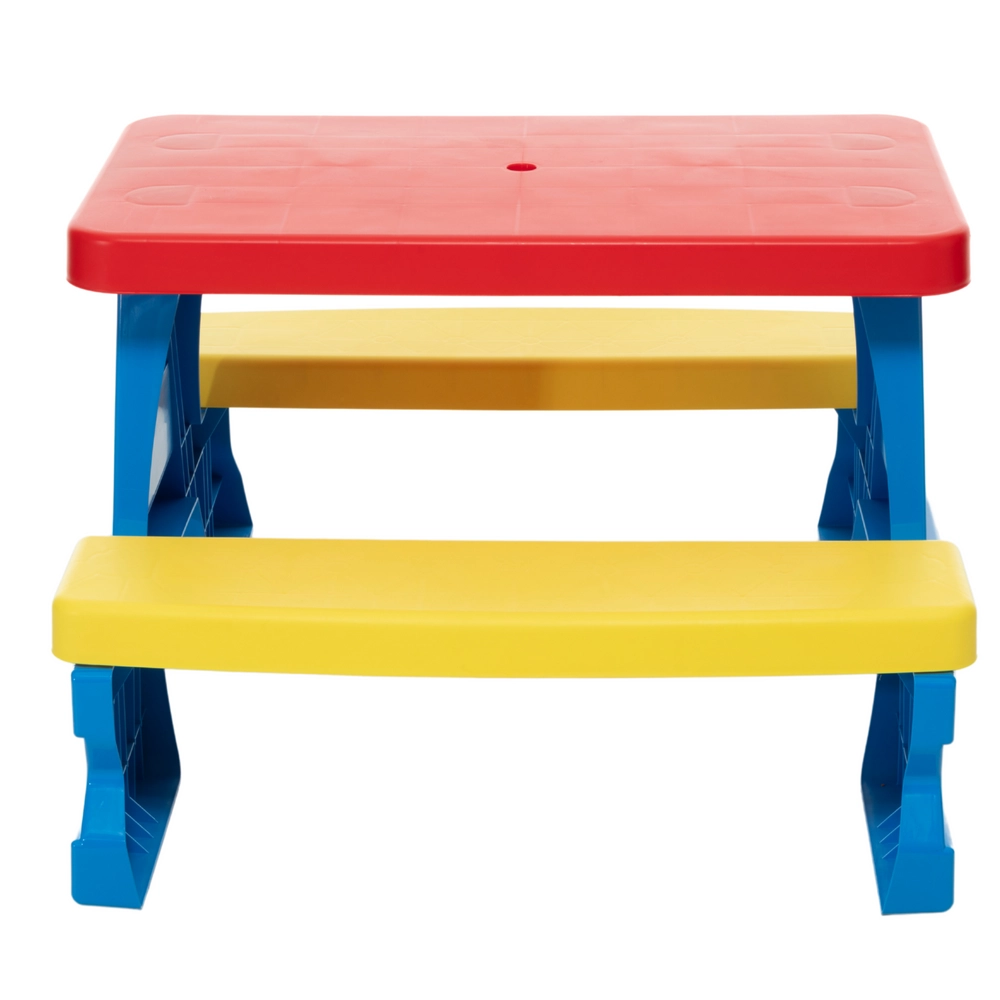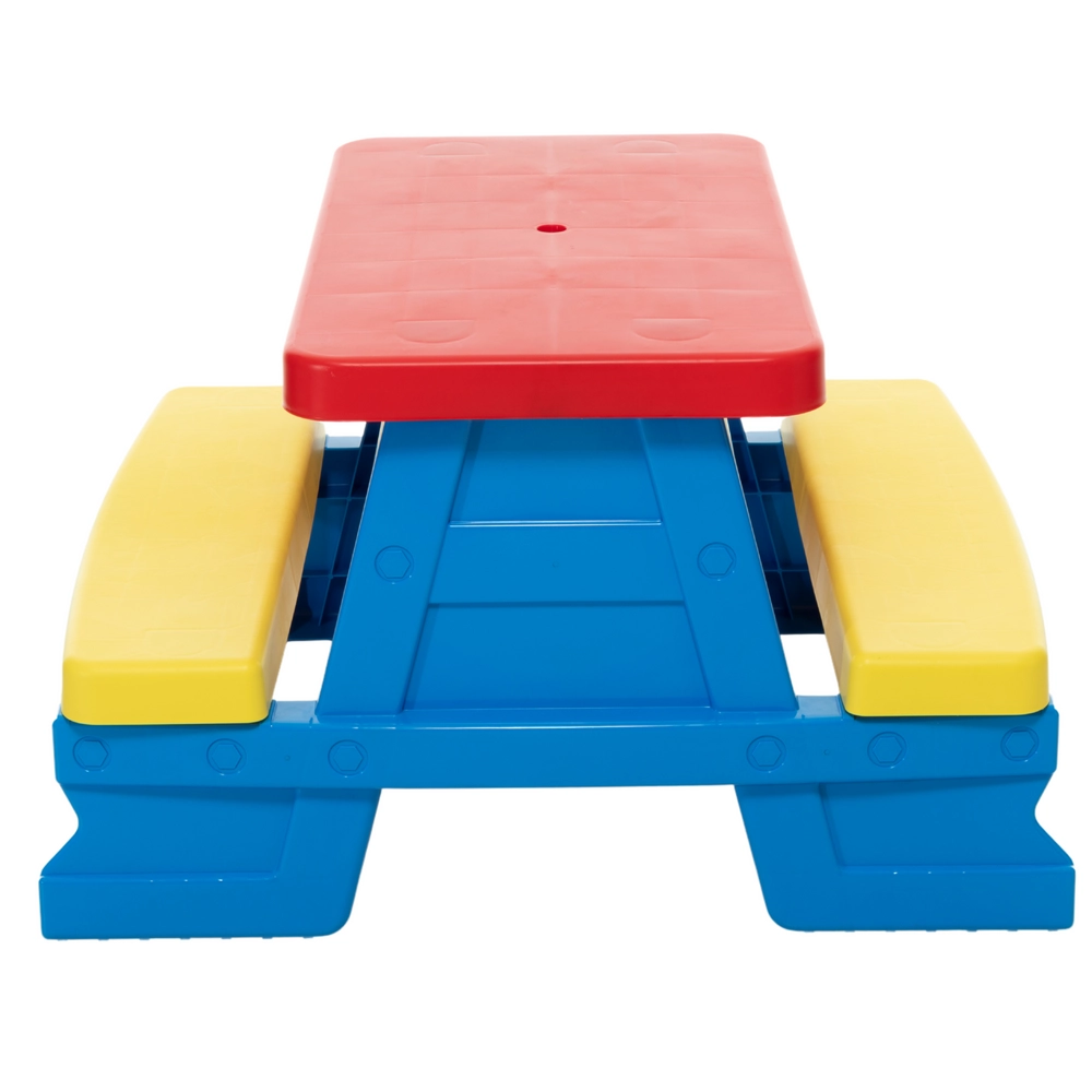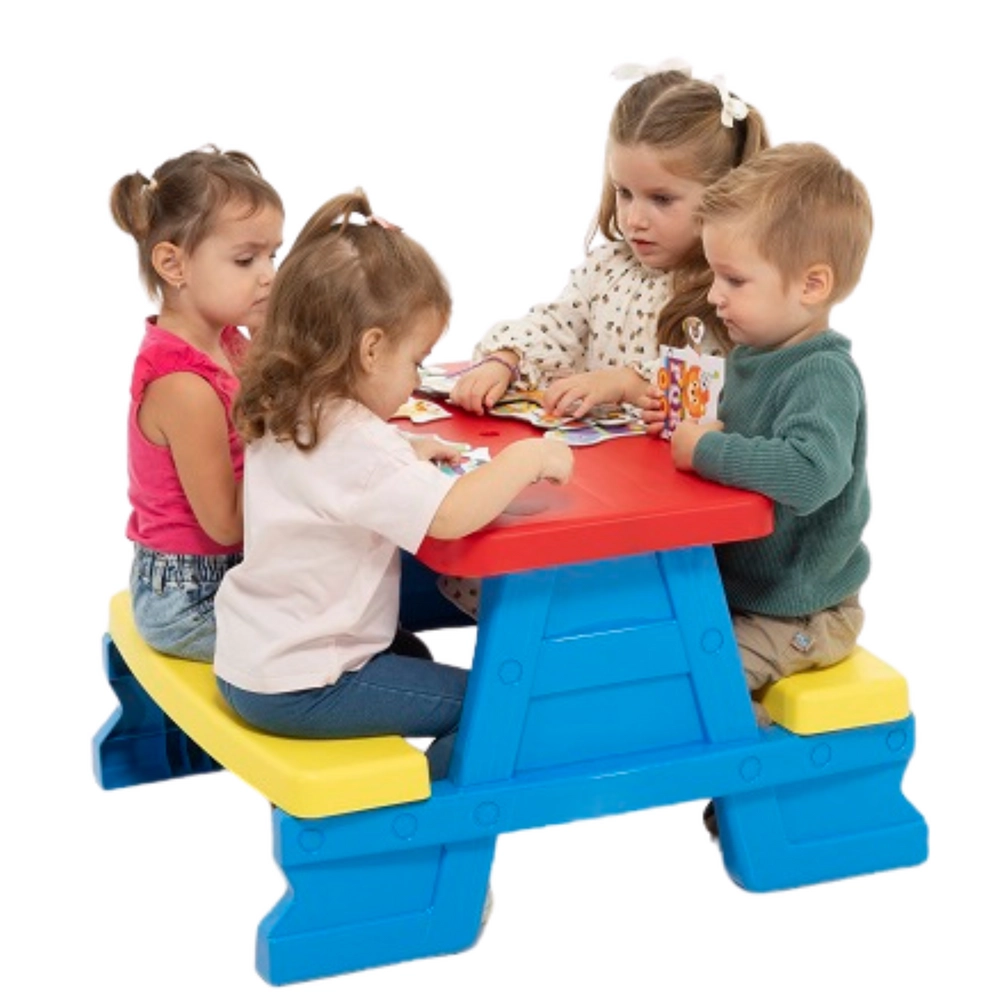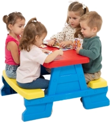 I colori vivaci rendono questo tavolo particolarmente attraente per i bambini, incoraggiandoli a svolgere attività all'aperto.
