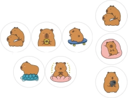 Rendi felici i tuoi bambini con il nostro set di adesivi con capibara. La collezione offre 500 adesivi unici raffiguranti capibara in varie pose, come una capibara su uno skateboard, una capibara che medita o una capibara con una fotocamera. Con un diametro di 2,5 cm, gli adesivi sono ideali per decorare diverse superfici, che si tratti di laptop, diari o confezioni regalo.