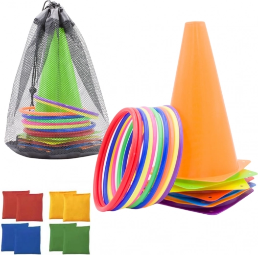 11 cerchi, 6 coni, 10 sacchetti di ginnastica, sacchetto di stoffa