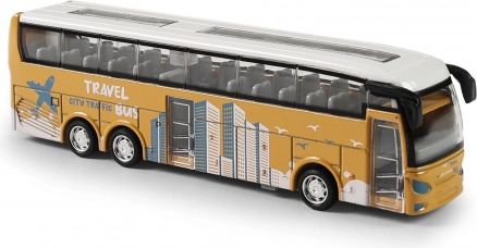Sali sull'autobus e inizia il tuo viaggio verso l'avventura! Mini autobus in metallo con ruota libera, porte apribili e corpo in metallo con elementi in plastica, ideale per tutti gli appassionati di modellini.