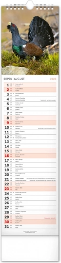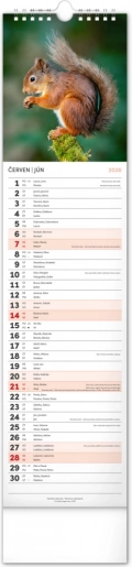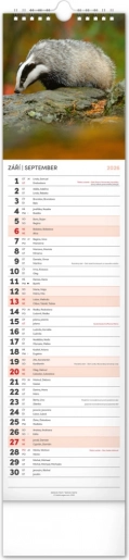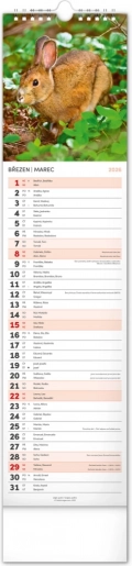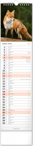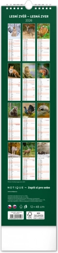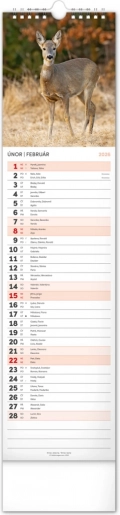 Bellissimo calendario da parete ceco-slovacco Fauna Selvatica 2026 con fasi lunari e spazio per appunti.