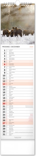 Scoprire la bellezza della natura con il nostro calendario a parete allungato, che ti trasporterà nel mondo dei cervi, volpi e boschi. 12 incredibili immagini ti accompagneranno attraverso le settimane del 2026.