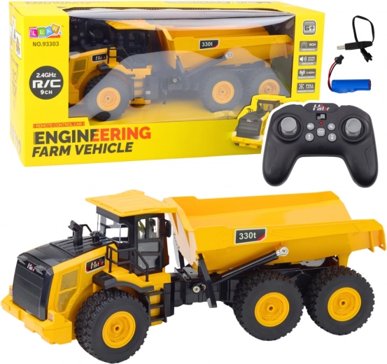 Camion telecomandato di colore giallo con designazione del modello 330t è il giocattolo perfetto per i piccoli appassionati di macchine edili. Con grandi ruote, sistema inclinabile e costruzione di alta qualità offre un esperienza realistica e consente un controllo senza problemi grazie alla tecnologia 2,4 GHz.