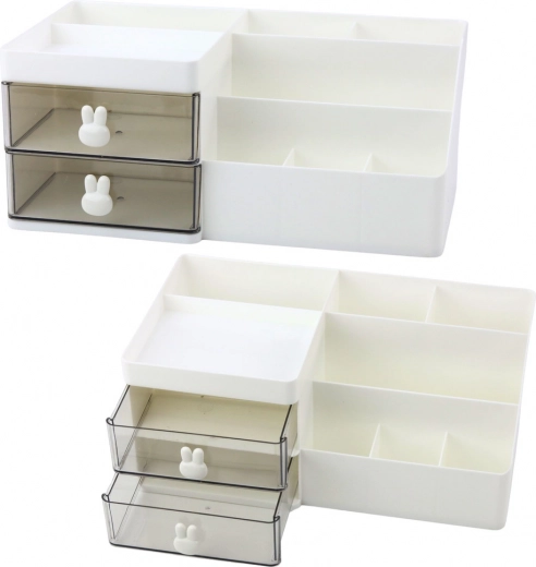 L'intero organizzatore è realizzato in plastica resistente che regge all'uso quotidiano. Design minimalista e colori neutri si adattano perfettamente a qualsiasi spazio, sia in ufficio, nella cameretta dei bambini, o nello studio di casa. Le maniglie dei cassetti a forma di coniglietto conferiscono all'organizzatore fascino e uno stile unico.
