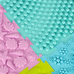 - Supporta lo sviluppo del bambino – grazie alle diverse texture dei tappetini aiuta a sviluppare le capacità tattili e motorie.