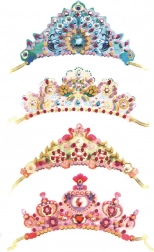 - Contenuto del set: 4 corone in cartone, set di decorazioni adesive scintillanti, nastri dorati