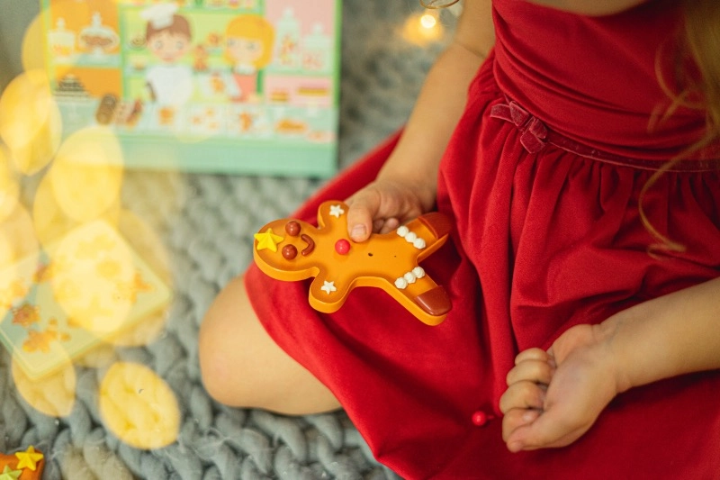 Questo creativo set in legno offre ai bambini la gioia della pasticceria senza briciole né disordine. I pezzi si assemblano facilmente e, grazie ai fori studiati con cura, restano al loro posto, consentendo ai bambini di creare ripetutamente nuove combinazioni dolci. Il set è custodito in una scatola illustrata che funge anche da pratica superficie di lavoro.