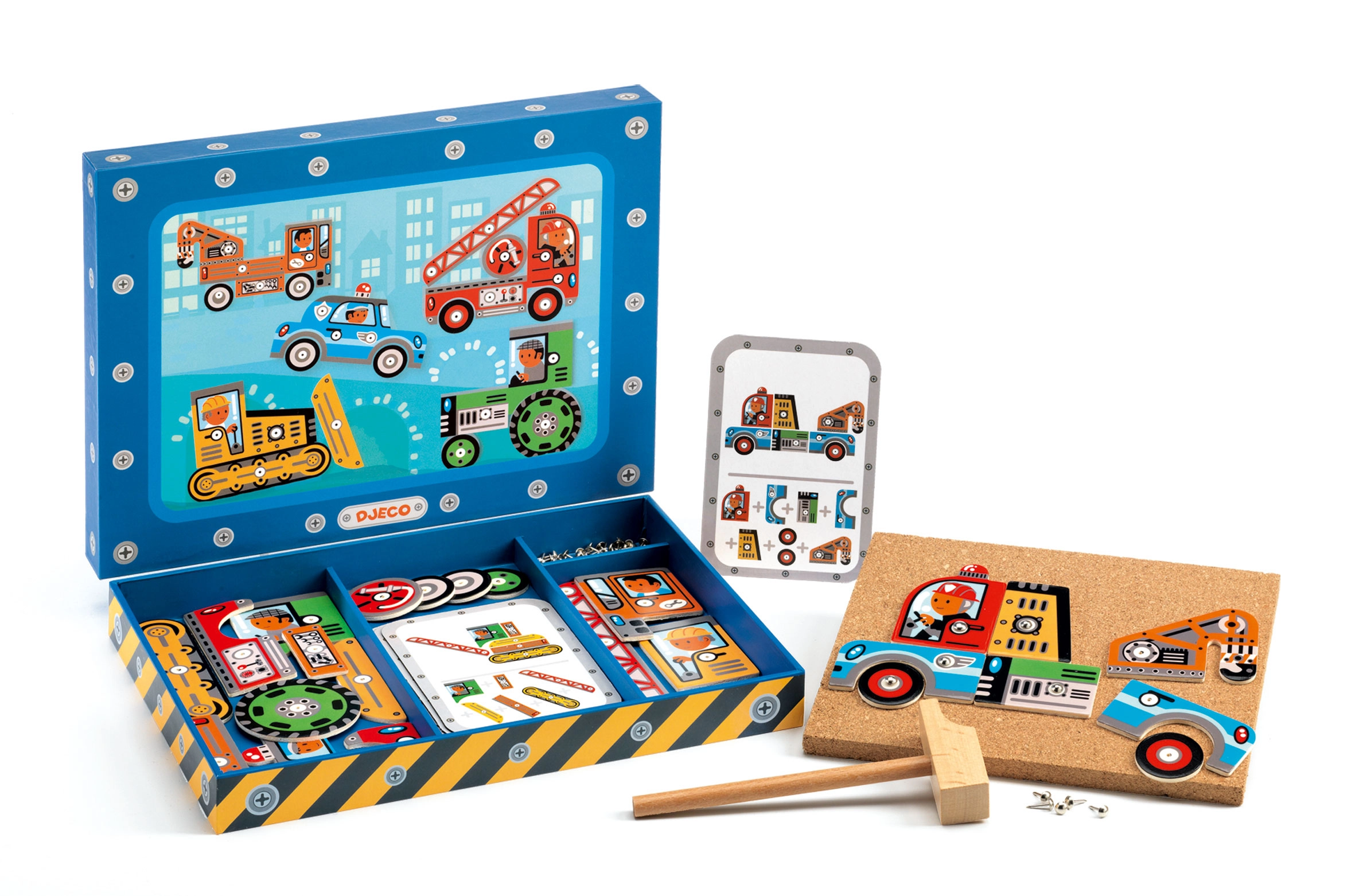 Divertiti con i veicoli in legno da martellare Djeco. Questi giocattoli creativi aiutano a sviluppare le abilità motorie e supportano l'immaginazione dei tuoi bambini in modo divertente.
