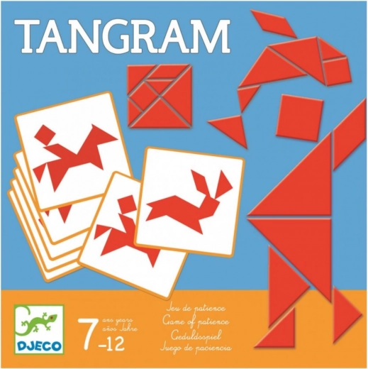 Tangram di Djeco è un affascinante gioco logico per bambini dai 7 ai 12 anni, che sviluppa il pensiero logico, l'immaginazione spaziale e la pazienza, utilizzando sette pezzi di legno e 125 carte fronte-retro con compiti e soluzioni.