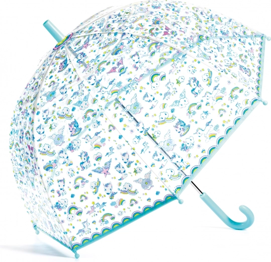 Adorabile ombrello per bambini con motivo unicorni del marchio DJECO. Un accessorio fantastico per ogni avventura piovosa.