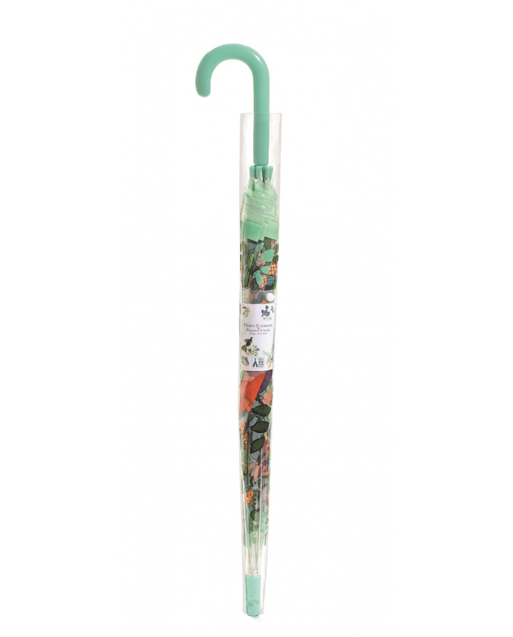 Un elegante ombrello per bambini con motivo di fiori e uccelli farà felice ogni piccolo avventuriero. Ha un comodo manico verde e una chiusura a pressione sicura, quindi si apre e si chiude facilmente. Grazie al diametro di 70 cm protegge in modo affidabile dalla pioggia ed è leggero e facile da trasportare.