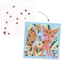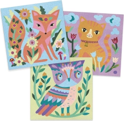 Questo set di sabbie, amatissimo, offre ai bambini un modo facile per creare splendide illustrazioni di animali notturni. Le aree sulle cartoline sono adesive: basta scoprirle con la spatolina e cospargerle di sabbia colorata. L’eccesso si versa facilmente di nuovo nella confezione tramite l’apposita apertura. Le sabbie fluorescenti fanno sì che i motivi prendano magicamente vita al buio.