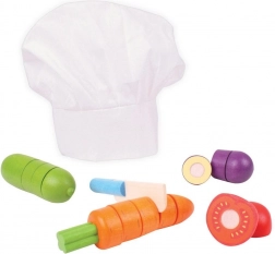 • Set completo – coltello in legno, verdure e cappello da cuoco in tessuto.